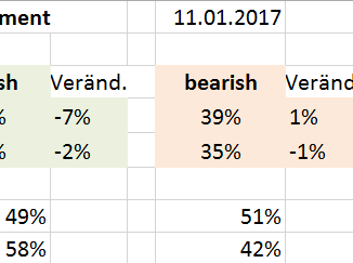 Hier sind die neuesten Umfragedaten aus Frankfurt für den DAX: Beurteilung der DAX-Börsenstimmung Nach einer Woche Börsenhandel sind die Profis wieder übervorsichtig. Um 7% hat sich das Profi-Bullenlager verkleinert. Davon haben 6 % der […]