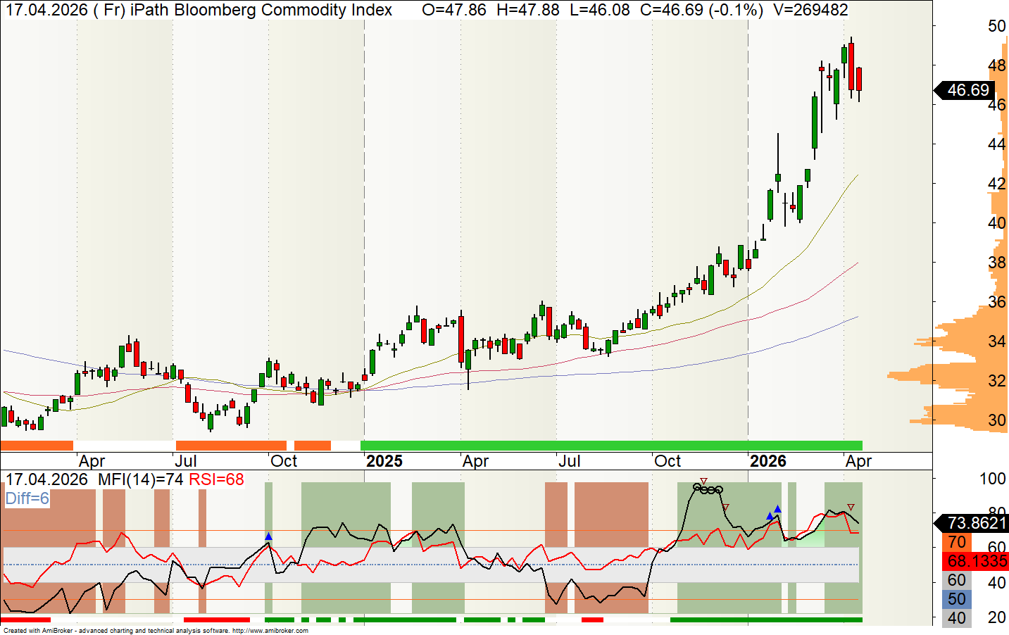 Bild: Wochenchart des Bloomberg Commodity ETF [DJP]